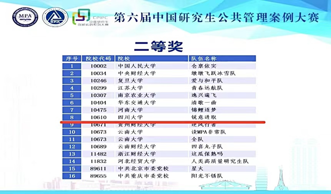中国研究生公共管理案例大赛是我国公共管理领域规模最大、层次最高的研究生竞赛。我院MPA培养一直引导学生关注公共管理领域实际问题,提高学生运用相关理论和方法解决公共管理实际问题的能力。此次案例大赛成绩的取得,离不开学院、MPA中心及指导老师的支持与付出,离不开队员的协作与拼搏。pc加拿大网站预测推荐MPA中心将继续立足西部,为培养公共管理人才贡献力量。