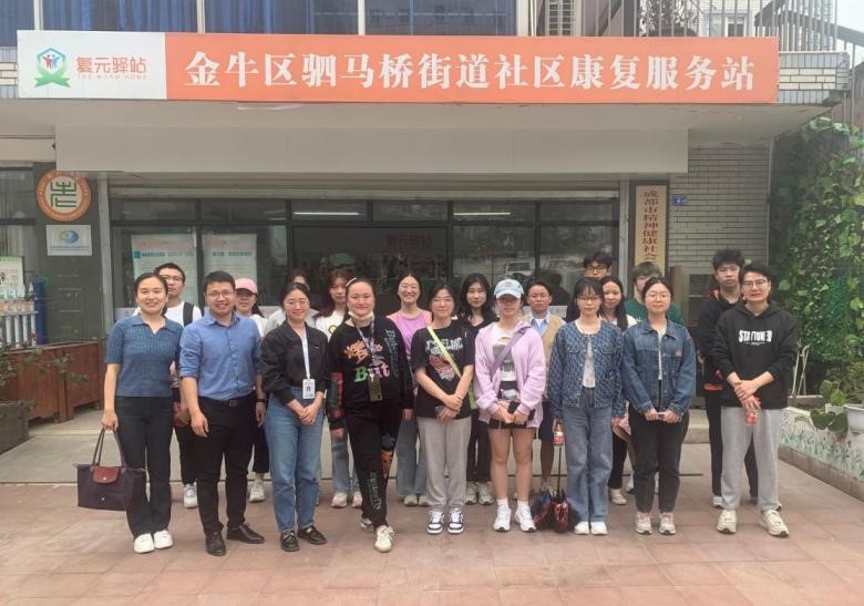 为促进理论学习和实践活动的紧密结合、深化学生对于课堂知识的理解和社会工作实务的认识,2023年4月12日下午,我院《家庭社会工作》课程共计18名同学在社会学与心理学系副教授崔珂老师的带领下走进成都市金牛区驷马桥街道社区康复服务站开展了实践参访。活动伊始,成都市利川社会工作服务中心社工代琼瑶先为同学们介绍了机构的成立背景与服务领域,询问同学们对精神健康以及精神康复者的认识。接着社工从“生活为本”的康复模式出发,介绍复元驿站具体开展的服务内容,引导同学们思考社区康复“是什么”、“做什么”等问题。