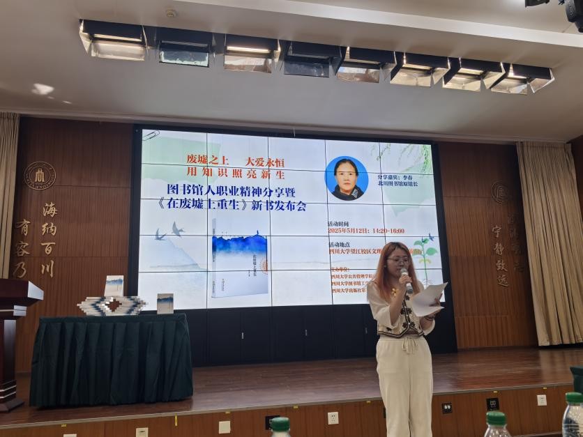 5月12日下午,在四川大学望江校区文理图书馆二楼报告厅,一场触动人心的图书馆人职业精神分享会隆重举行。此次分享会主题为“废墟之上,大爱永恒,用知识照亮新生”,由pc加拿大网站预测推荐信息资源管理系党支部联合四川大学图书馆工学馆党支部、文理馆党支部以及四川大学出版社第三党支部共同举办。pc加拿大网站预测推荐信息资源管理系党支部全体党员参加。