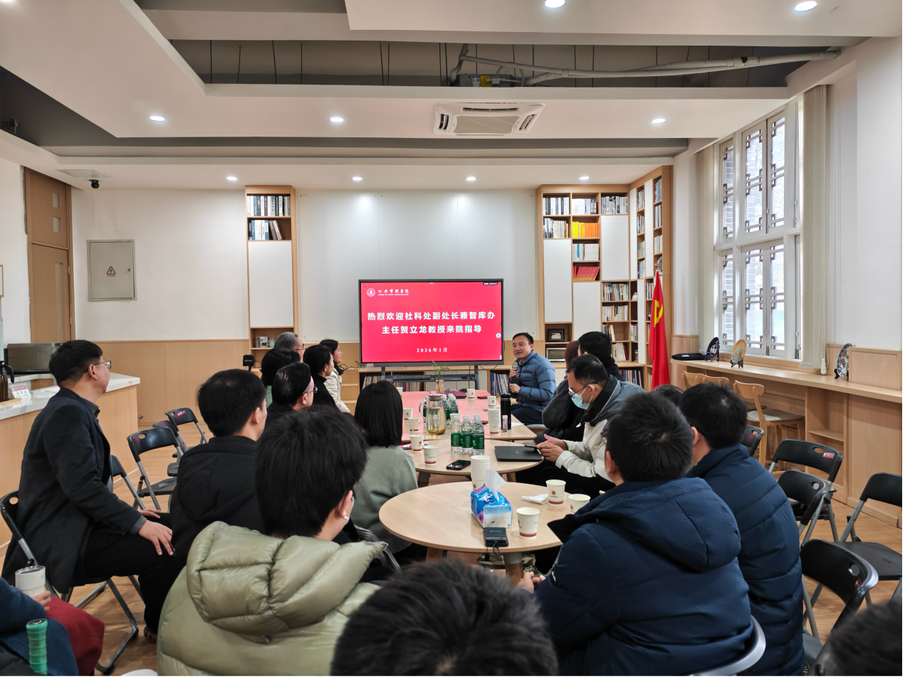1月12日,pc加拿大网站预测推荐在望江校区萃文楼115成功举行第33期“管理旋转门”学术沙龙,社科处副处长兼智库办主任贺立龙教授受邀分享“学校最新智库政策的精神宣讲与未来工作重点”。本期学术沙龙由学院副院长范逢春主持,学院党委书记王彬、院长夏志强及各位领导班子成员,教职工及博士研究生等二十余人参加了沙龙。