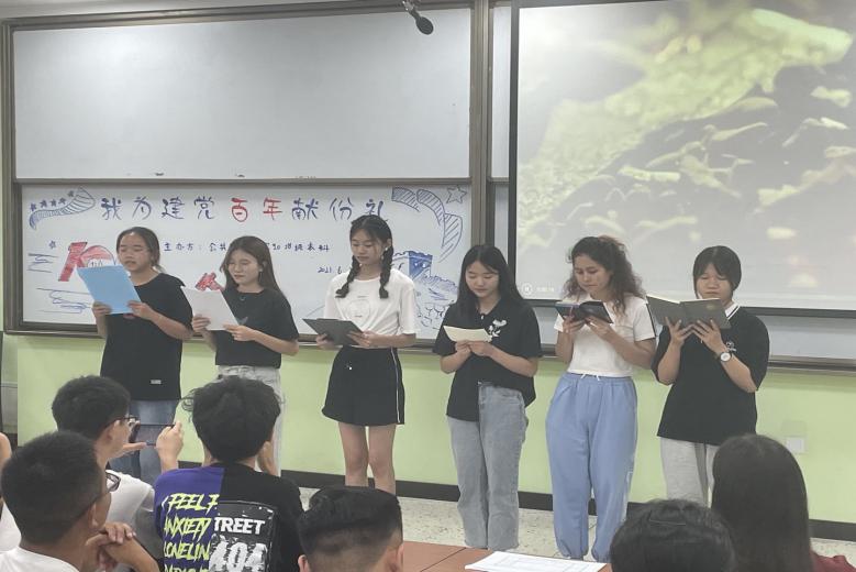 最后出场的是公管大类一班的同学们,他们回归淳朴,采取了讲述党史故事的方法,将自己的浓厚感情寄托在一张又一张精心准备的当时幻灯片中。历史仿佛在这一刻重现,那建立新中国、实现中华民族伟大复兴的理想穿越了千百年,伴随着这演讲声,又一次回荡在教室中,激励着我们每位同学奋勇向前。