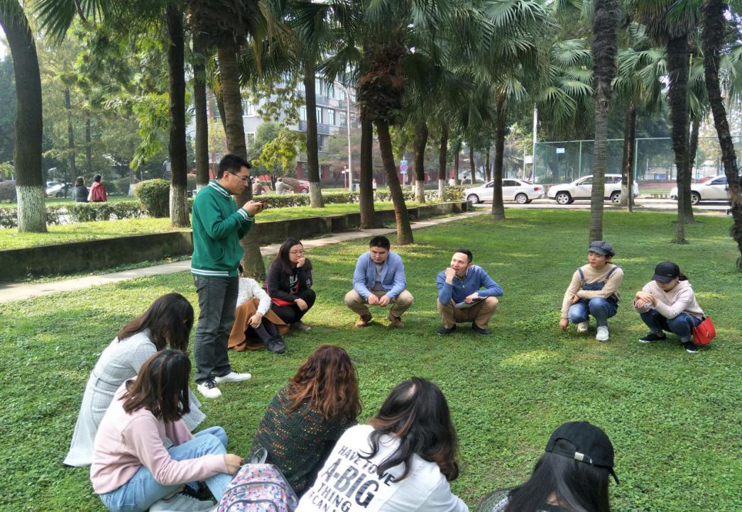最后,全体党员在干训基地前的草坪上开展了“川大红色人物事迹”分享会。宗教学专业王禹栋同学对抗战时期的四川大学和抗战胜利后的四川大学进行了详细的介绍,展示了四川大学作为抗战时期大后方的文化教育中心所做出的特殊贡献。