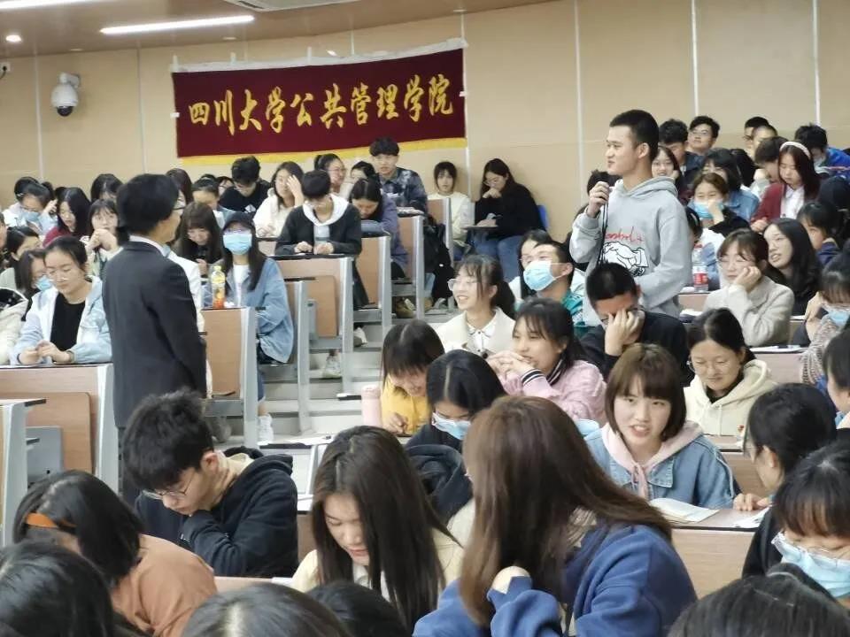 姜新老师以“让青春在志愿服务中绽放光芒”为题给同学带来了精彩授课。姜新老师从志愿服务的全球现状、志愿服务如何开展、志愿服务大赛解读三个方面入手,带领大家深入了解如何系统规范地开展志愿服务工作。首先,姜新老师从国际视角指出,志愿服务正以其突出的社会效益受到越来越多国家和社会的重视,许多国家的志愿服务起步早,规模大,社会效益好,已逐步进入组织化、规模化、系统化的轨道,形成了一套比较完整的运作体制和国际惯例。我国从“2008年志愿服务元年”开始志愿服务逐渐规范化,出现了志愿服务走出国门这一新的探索。接着,姜新老师通过现场互动问答了解到很多同学都参与过自愿服务,指出:四川大学学生志愿服务时数逾300万小时,目前已打造出“五彩石”、“解语花”等代表性志愿项目,产生了良好的示范效益。